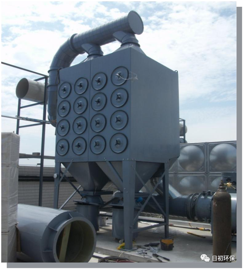 含尘气体在风机的引导下进入滤筒除尘器后,由于气流端面的突然扩大及气流分布板的作用,气流中一部分颗粒粗大的尘粒在重力和惯性力的作用下,沉降到灰尘斗;粒度细、密度小的尘粒进入过滤室,通过布朗扩散和纤维拦截等综合效应,使粉尘沉积在滤筒的滤料表面,净化后的气体进入净气室内,由出风口经风机排出。滤筒除尘器的阻力随着滤筒的表面积灰增加而变大,当阻力达到一定的设定值时,通过反吹系统脉冲阀经喷吹管的小孔,喷射出一股高速高压气流,通过进行清灰。此时PLC程序控制脉冲阀的启闭,当脉冲阀开启时,气包内的压缩空气通过文丘里管的扩充,均匀的进入滤筒内部,在滤筒内部形成瞬间的正压,产生巨大的振动,使沉积在滤料上的粉尘脱落,掉入灰斗内,收集的粉尘通过卸灰阀,排出到灰桶内。